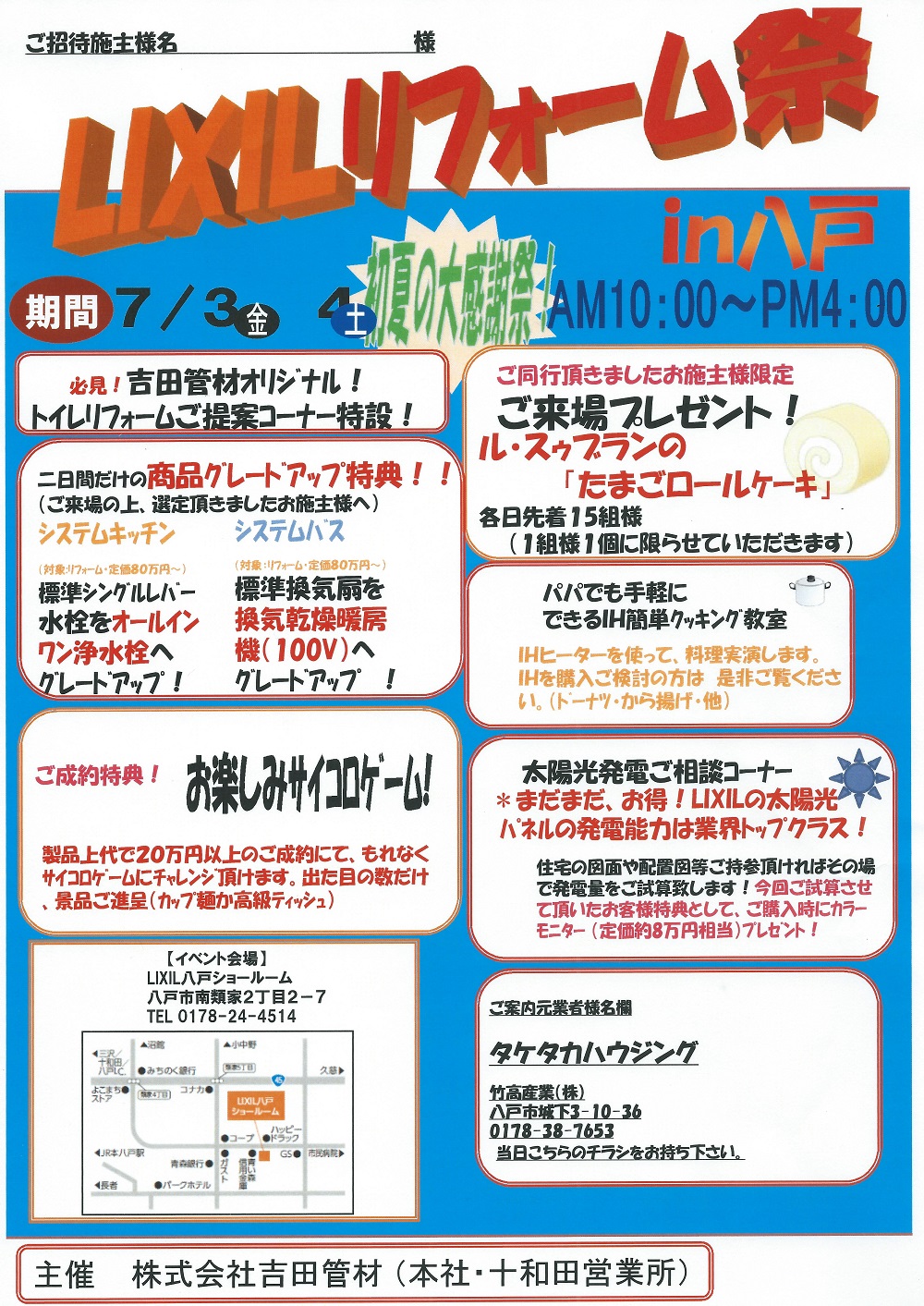 2015年7月3日(金)~4日(土)、八戸市・LIXIL八戸ショールームにて『LIXILリフォーム祭・初夏の大感謝祭!』が開催されました。
